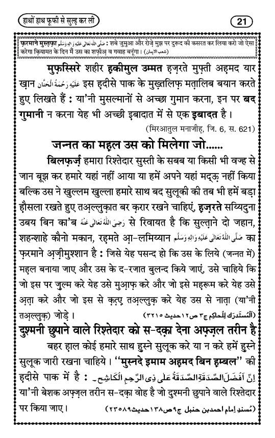 दुश्मनी छुपाने वाले रिश्तेदार को स-दका देना अफ्जल तरीन है