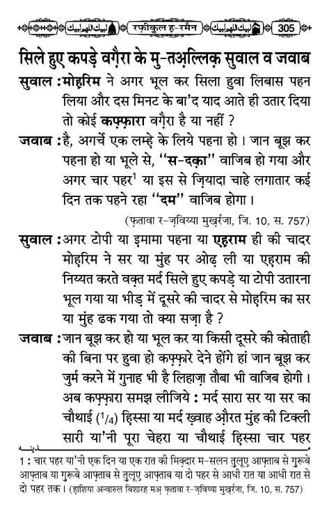 सिले हुए कपडे वगैरा के मु-तअल्लिक सुवाल व जवाब